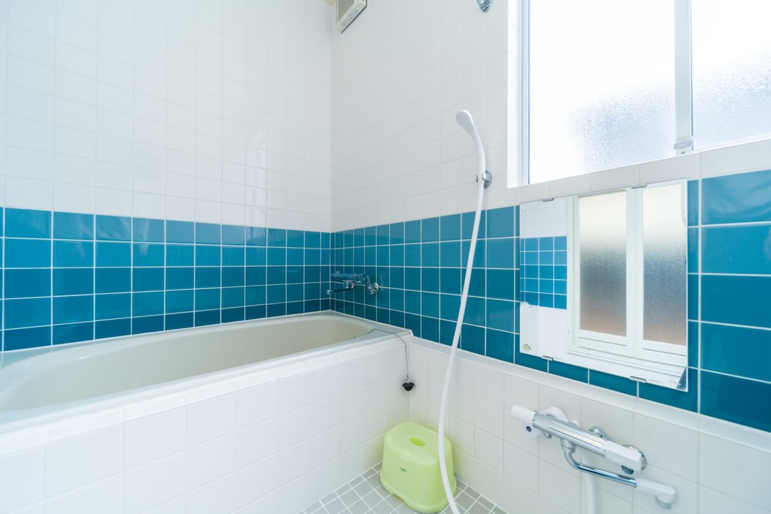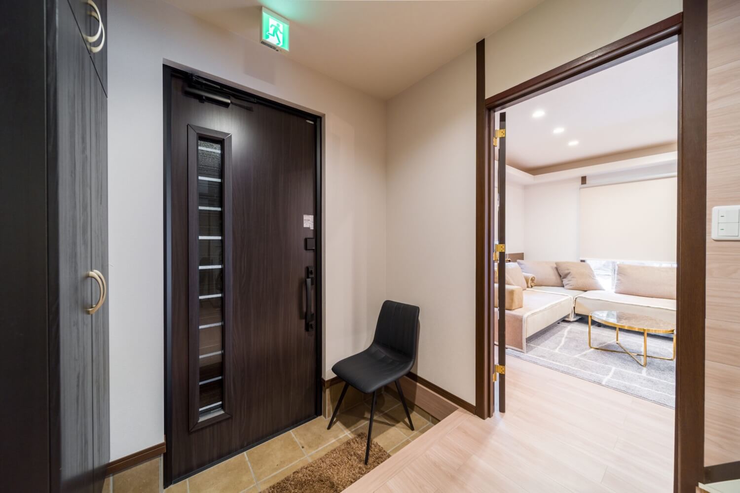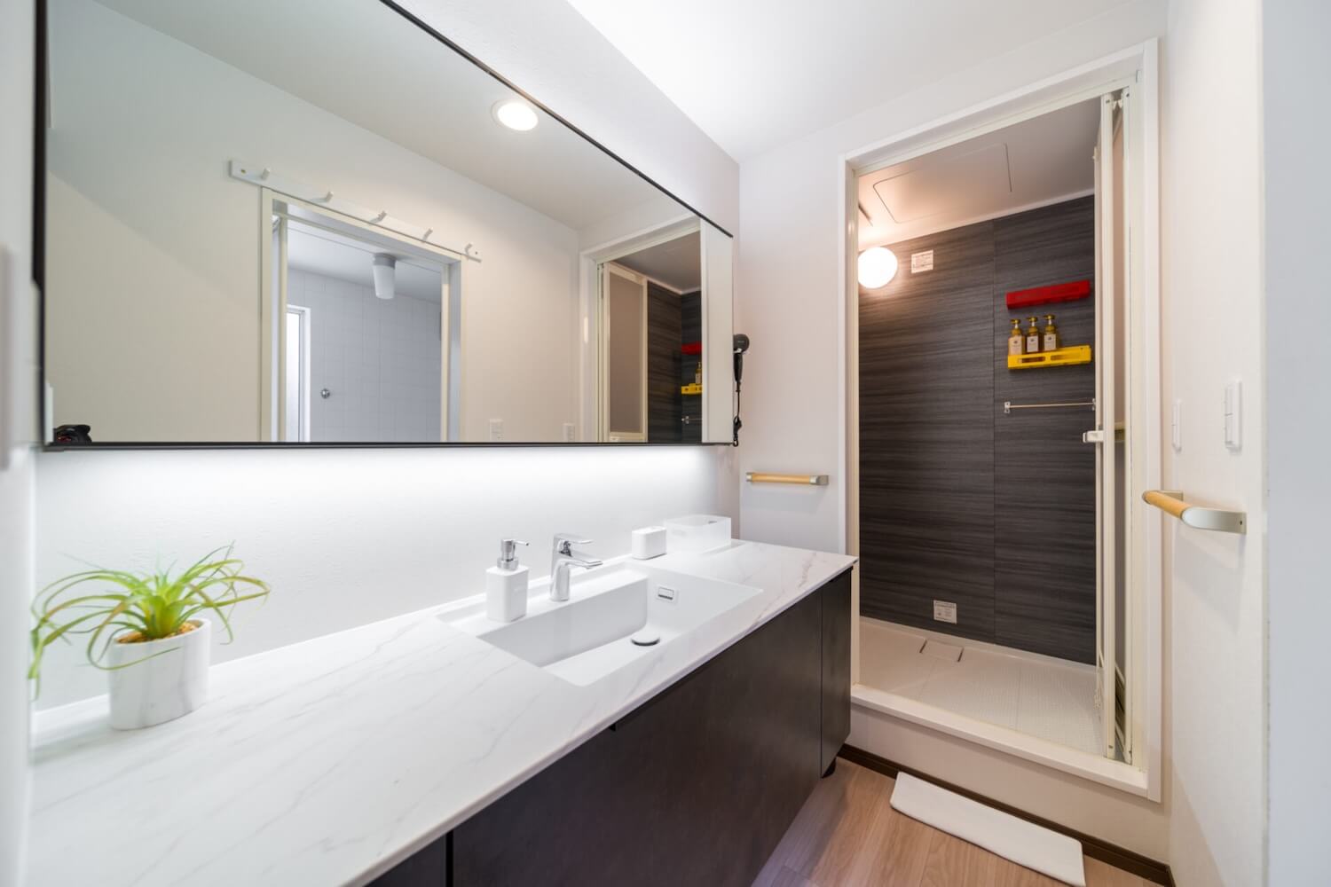 Off to the right of the entry hall is the Japanese Tatami room with two futon beds, at the end of the hall is a separate toilet and full bathroom, with a bathtub/shower and also a modern free standing shower unit.